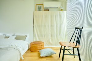 ienoはカーテンとしての機能だけではなく、仕切りとして利用することが可能です。建具と違い、柔らかな空間にしてくれるのが特徴です。