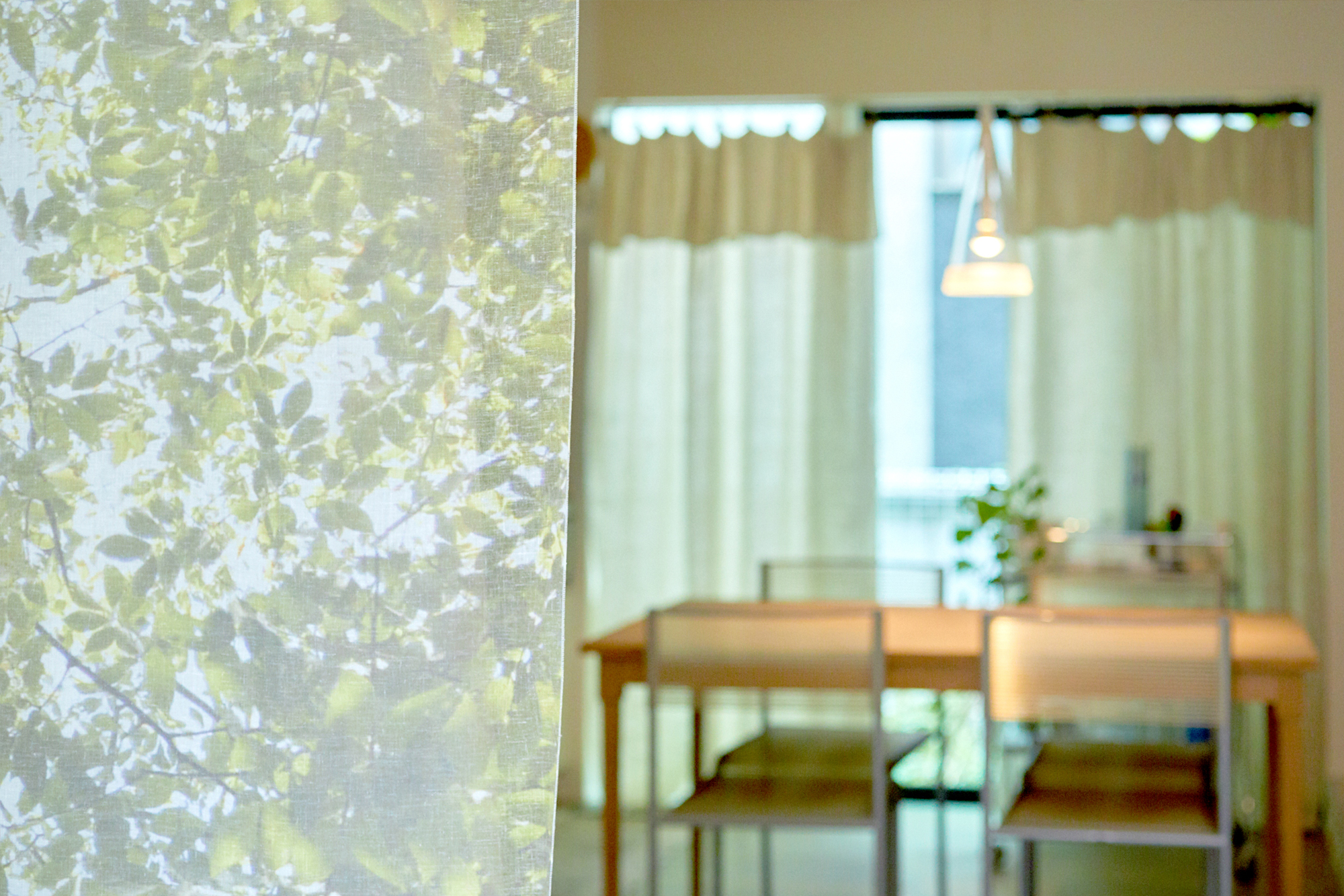 ienoはカーテンとしての機能だけではなく、仕切りとして利用することが可能です。建具と違い、柔らかな空間にしてくれるのが特徴です。