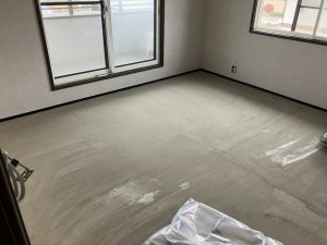 既存の床下地にクッションフロアを貼る前にアースシールというもので下地処理をします。