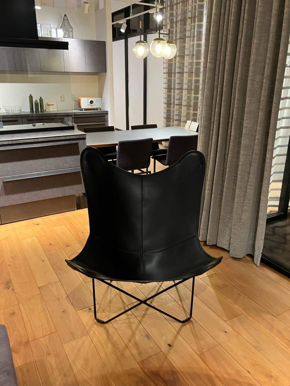 バタフライチェア”の愛称でも知られる本革チェアです。